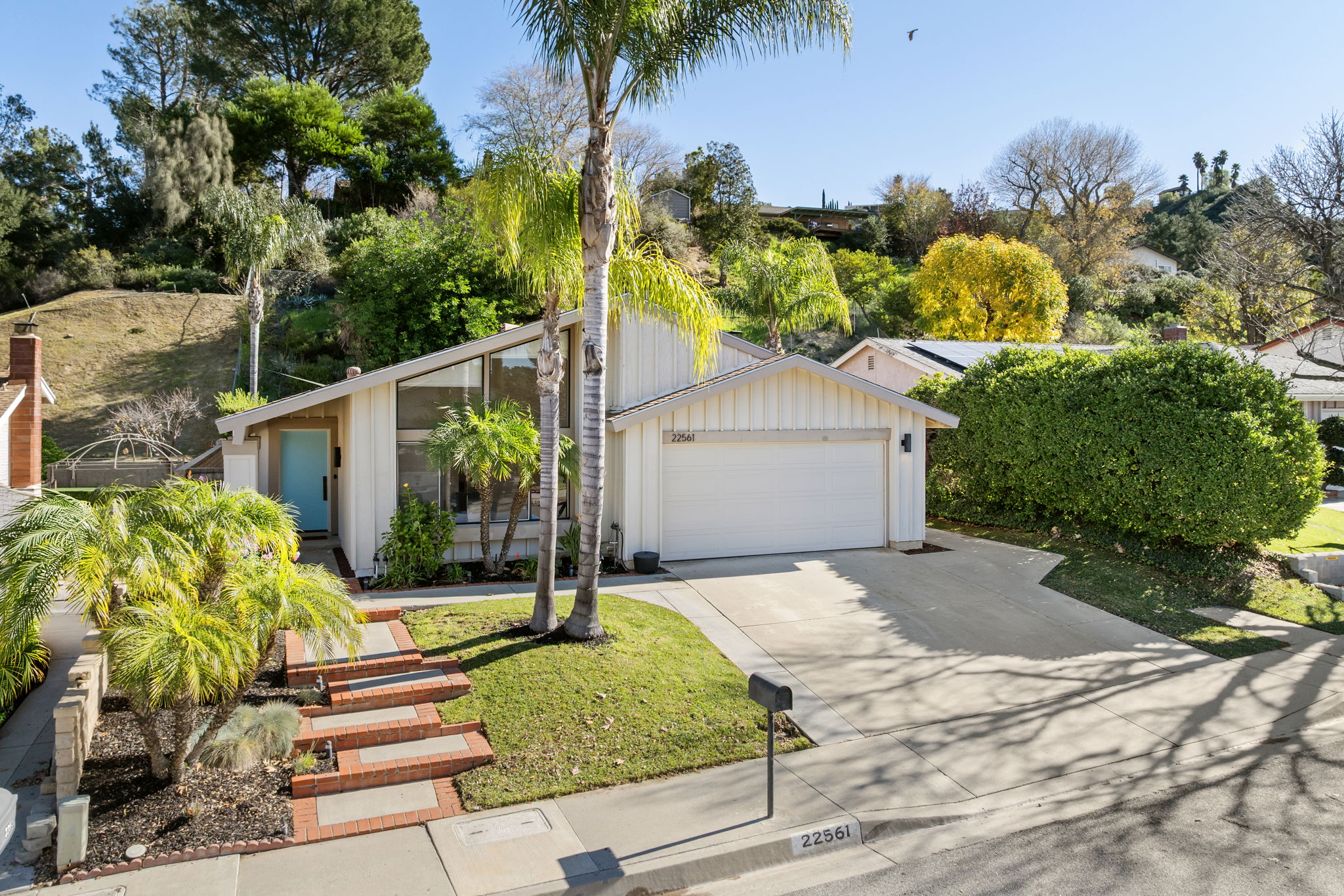 Welcome home to this beautifully upgraded 4-bedroom mid-century modern residence nestled in the desirable hills of Saugus in Santa Clarita. Thoughtfully designed for modern living, this home blends architectural character with energy-efficient upgrades and seamless indoor-outdoor flow. A formal entry opens to a light-filled living room featuring soaring vaulted ceilings and dramatic floor-to-ceiling windows that frame the front of the home. An elegant archway leads into the updated kitchen and formal dining area—perfect for both everyday living and entertaining. The spacious primary suite offers more vaulted ceilings, an en-suite bath, and direct access to the fully renovated backyard. Outside, enjoy a true entertainer’s retreat with a covered patio, new turf and pavers, built-in BBQ, and a new misting system - ideal for warm Santa Clarita summers. Notable upgrades include a new electrical panel, tankless water heater, new interior doors throughout, a new front door, new dual-pane windows in the rear bedrooms, new refrigerator and dishwasher, and new pancake LED lights with dimmers in all rooms. No HOA and NO Mello-Roos! Best of all, the home features fully paid-off solar and a Tesla Powerwall, delivering long-term energy efficiency, lower utility costs, and peace of mind. This turnkey home offers the perfect balance of comfort, sustainability, and style in one of Santa Clarita’s most sought-after neighborhoods.